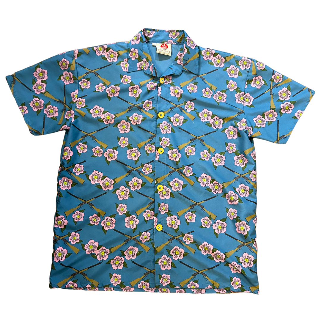 Here is your chance to finally win the “best dressed in blind award” with Ol’ Red and Canada First Ammo! We are a brand known for its unique and daring fashion choices, and we are once again pushing the boundaries of style with our latest collection of firearm lifestyle button-up shirts. This time, we have drawn inspiration from two seemingly contrasting worlds – the tranquil beauty of Hawaii and the rugged allure of firearms. The result? A captivating blend of Aloha spirit and firearm flair that’s sure to turn heads and spark conversation in the bush or at your buddies stag party, these shirts are sure to please.